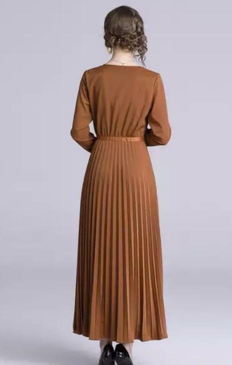 プリーツ切り替えワンピース エレガント ドレス 長袖 Vネック フォーマル Aライン プリーツ マキシ丈 結婚式 パーティドレス 大きいサイズ | 韓国アパレル 通販サイト ネットショップ amour
