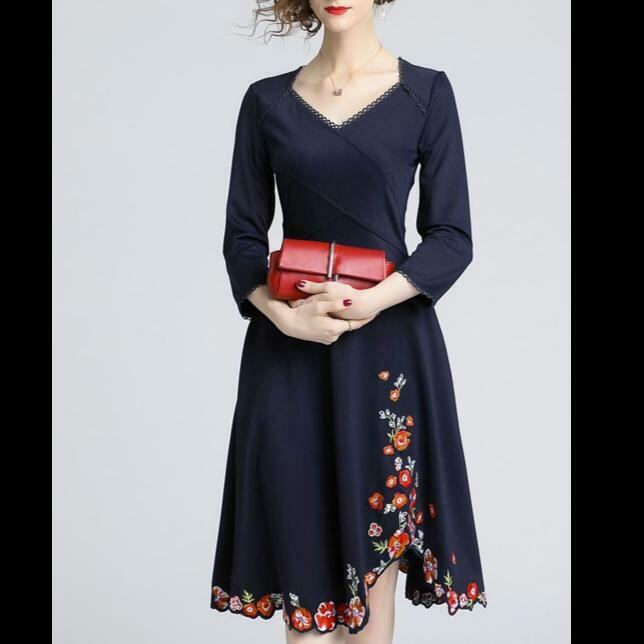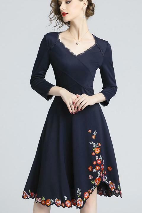 裾に花柄刺繍入りのエレガントなパーティードレスです★