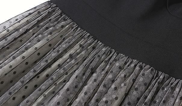 レース ドット ワンピース シースルー ドレス ドットスカート 半袖 フォーマル Aライン マキシ丈 結婚式 パーティドレス ブラック 黒 大きいサイズ | 韓国アパレル 通販サイト ネットショップ amour
