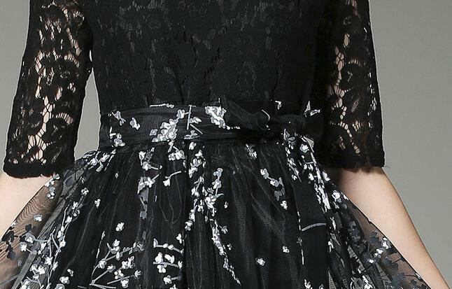 小花柄 花柄 レース 切り替えワンピース ドレス シースルー フォーマル ロング丈 シフォンスカート 結婚式 パーティドレス ブラック レッド 黒 | 韓国アパレル 通販サイト ネットショップ amour
