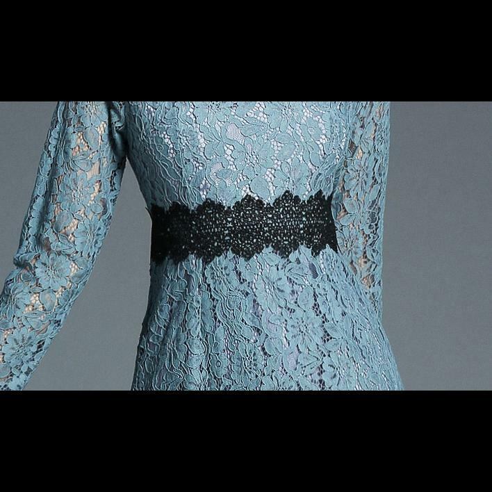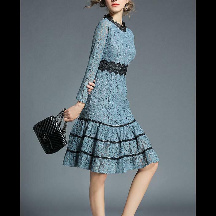 バイカラーフリルレースワンピース 結婚式 お呼ばれ 女子会 イブニングドレス パーティー ドレス 膝丈 長袖 大きいサイズ ブルー 青 春夏 ティアードフリル | 韓国アパレル 通販サイト ネットショップ amour
