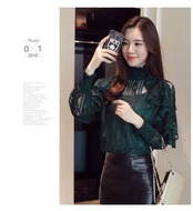 繊細なレースに、デコルテと袖に透け感があり、フェミニンなブラウスです^^