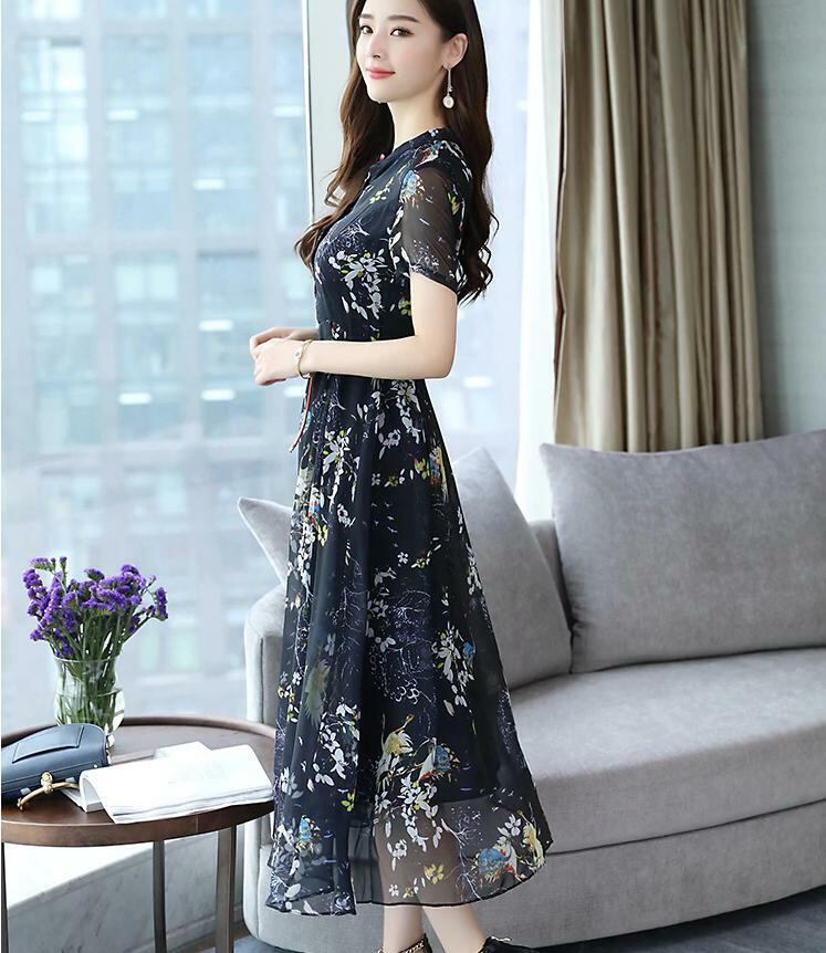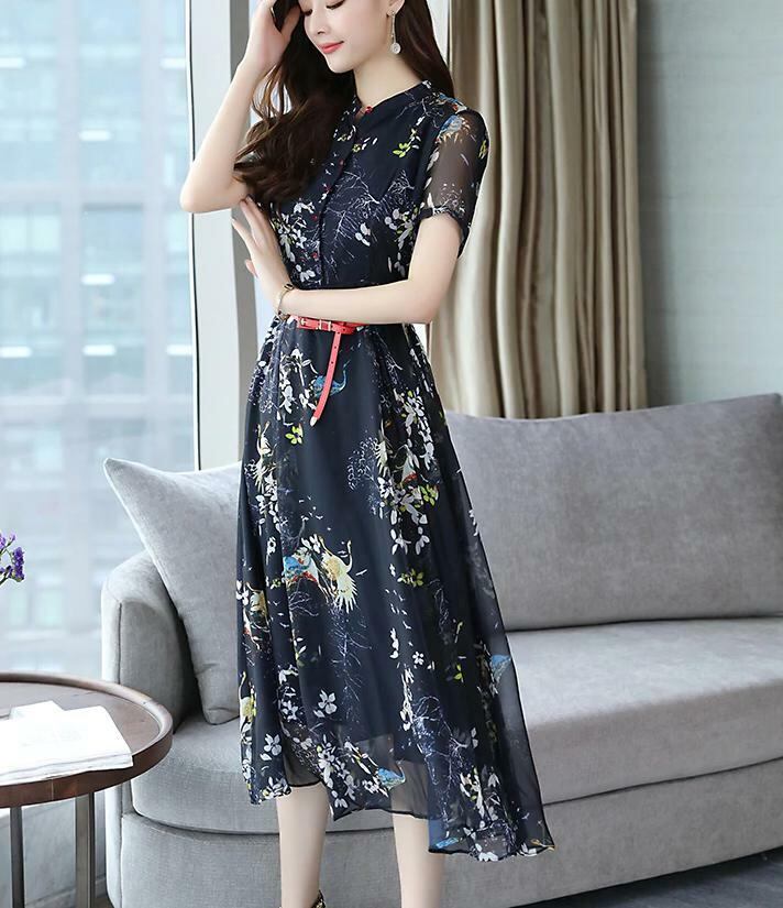 シフォンワンピース 半袖 Aライン ハイネック きれいめ マキシ丈 ベルト付き 演奏会 パーティー 二次会 結婚式 お呼ばれ 同窓会 大きいサイズ | 韓国アパレル 通販サイト ネットショップ amour