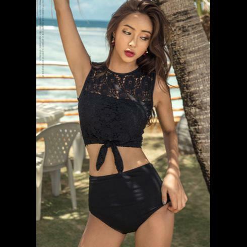 レース シースルー リボン タンキニ セクシー ハイウエストパンツ ビキニ 韓国水着 体型カバー 大人可愛い リゾート プール 海 夏 ブラック 黒 | 韓国アパレル 通販サイト ネットショップ amour