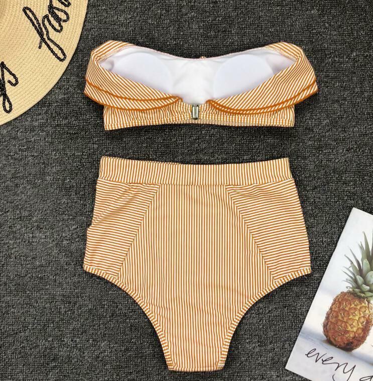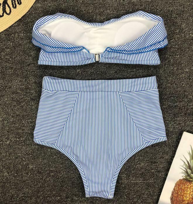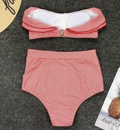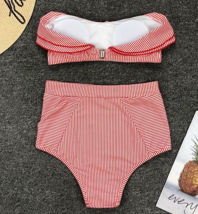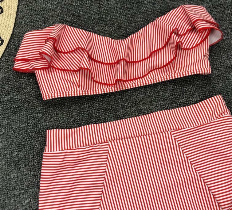 ストライプ 水着 フリル オフショルダー チューブトップ ハイウエスト 韓国水着 タンキニ ビキニ セクシー リゾート プール 海 夏 ブルー イエロー レッド | 韓国アパレル 通販サイト ネットショップ amour