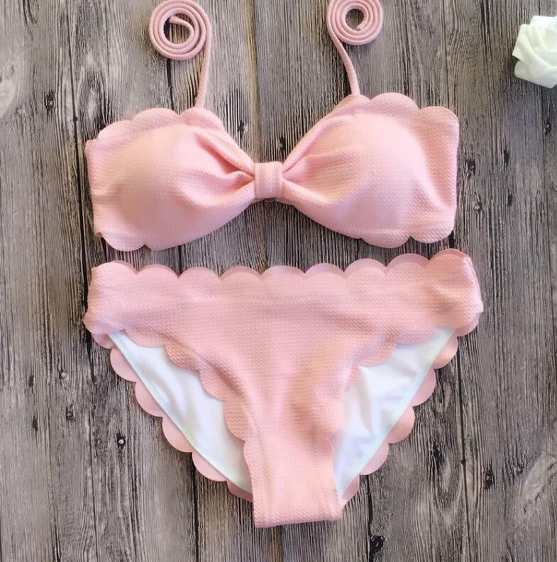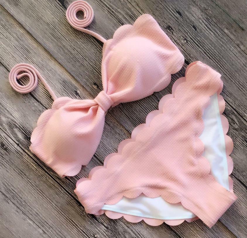 花びら風ビキニ スカラップ 韓国水着 ホルダーネック プレーンカラー かわいい リゾート プール 海 夏 黒 ブラック 赤 レッド オレンジ ピンク 黄色 イエロー | 韓国アパレル 通販サイト ネットショップ amour